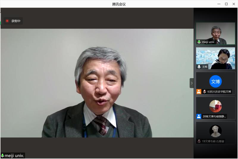 3月3日至5日,石川日出志教授以“东亚细亚和日本列岛的人类史”、“古代中日交流——生产和聚落”、“汉代的中日交流”以及“中国玺印考古学的提倡”为主题介绍了东亚地区的人类史与中、日、朝鲜半岛之间的文化交流,并对其研究领域中日出土的铜镜、印玺进行了专业讲授,创造性地提出了“玺印考古学”的观点,提倡采用考古学的方法和成果来研究玺印,为玺印的研究打开了新的方式。同学们在与石川老师线上答疑互动时提出了很多有趣且有深度的问题。