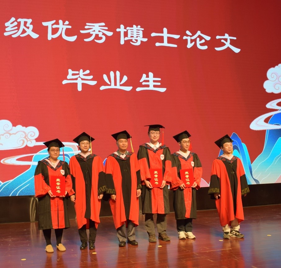党委书记闫雷宣读获得校级优秀博士论文毕业生名单,杨艳秋、王震中、刘建国为获奖毕业生颁发证书。