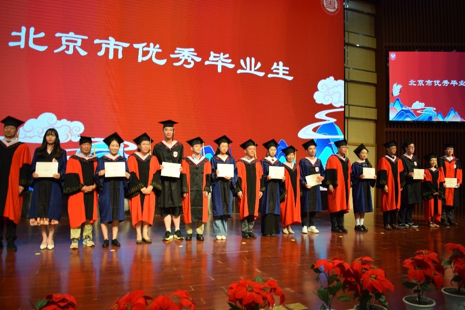 教师赵春青、王树芝、乌云高娃、刘源、郭物、贾衣肯、何利群、王昱廷、刘强为北京市优秀毕业生颁发证书。