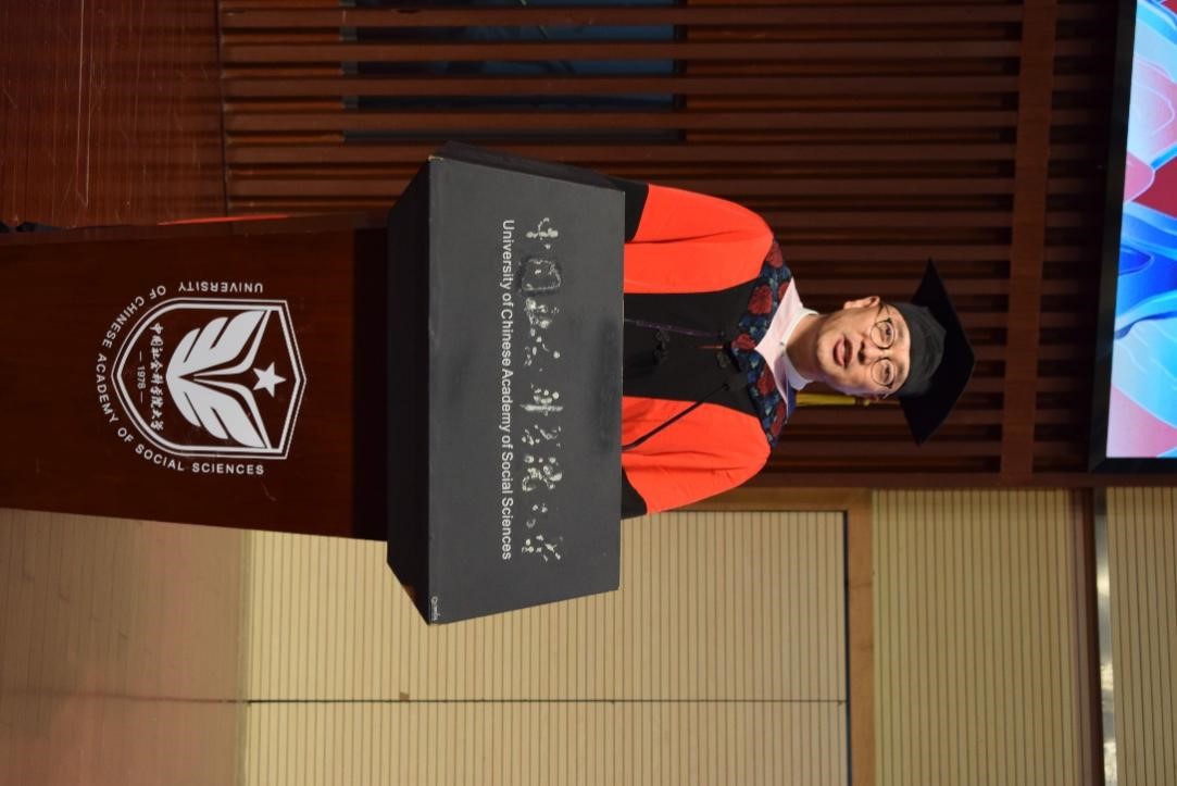 和学生同心同向的奋斗历程以及师生交往、交流、交融过程中共同熔铸的社科人文精神,肯定了学生们在学术和人格上的成长。她希望毕业生要将“小我”融入“大我”,做信念坚定的“爱国者”,坚守“社科人”强烈的家国情怀,肩负国家和民族的责任,知行合一,做新时代勇立潮头的实干家,在国家的现代化建设事业中谱写出无愧于时代的人生篇章。最后,杨院长以“向光而行,向阳而生”表达了对毕业生的无限期望和深情祝福,她希望大家积极向上,追求光明和希望,在成长的道路上不断超越自我,永远热爱生活,欣赏美好,不惧挑战。
