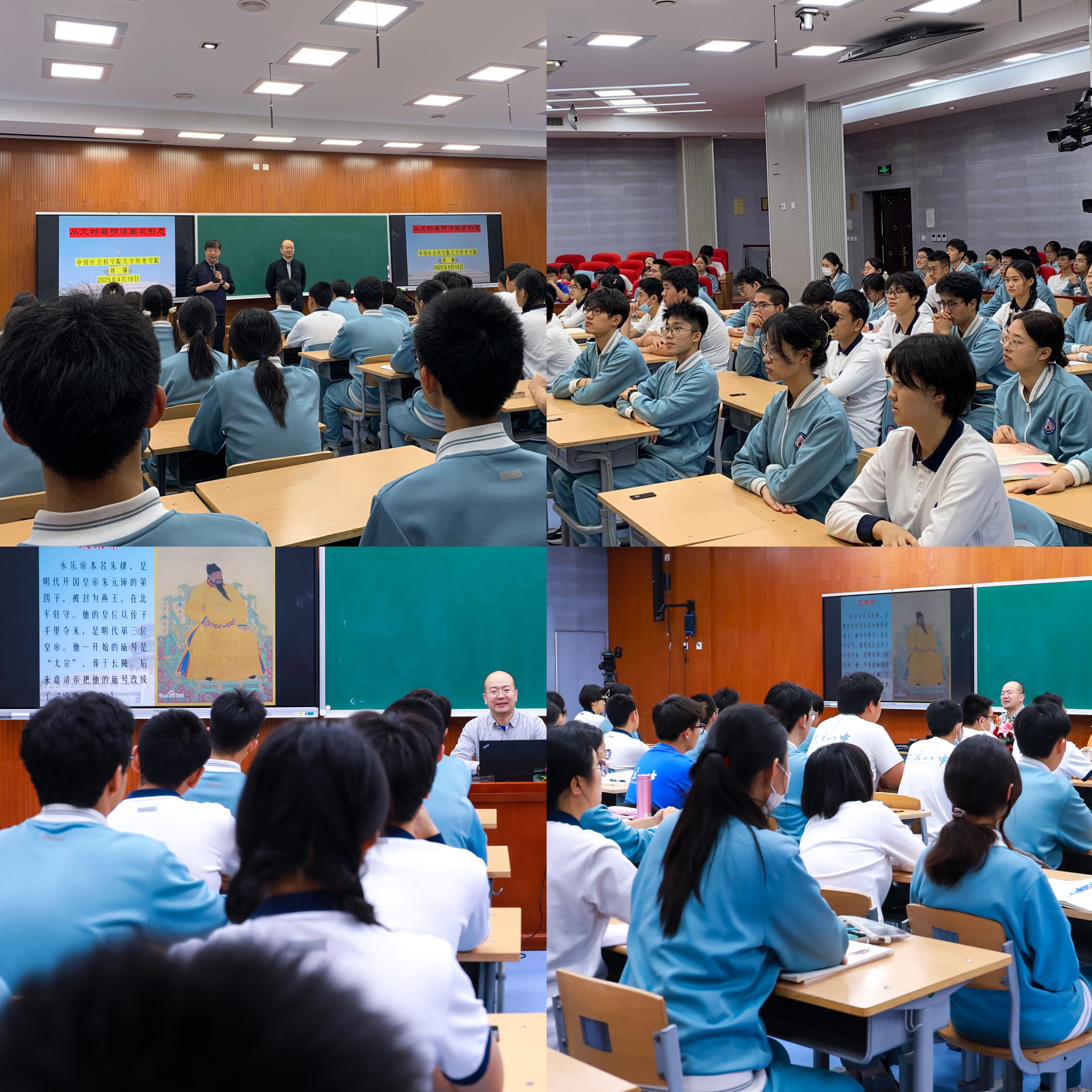 学术讲座环节亮点纷呈。座谈会后,由刘强副教授给高二和部分高三的同学们开展了一场题为“从文物看明清国家形态”专题讲座,本次的讲座现场有近百名师生到会参与,讲座兼具趣味性、科普性和学术性,既有对文物的精妙解读,又有典章制度的深度剖析,在史料实证与理论阐释的有机结合中,展现了历史学的独特魅力。现场学子们表示,这场“听得懂、学得会、用得上”的学术报告,让他们对大学课堂充满向往。这场跨越中学与大学的学术对话,在年轻学子心中播下了求知的火种。
