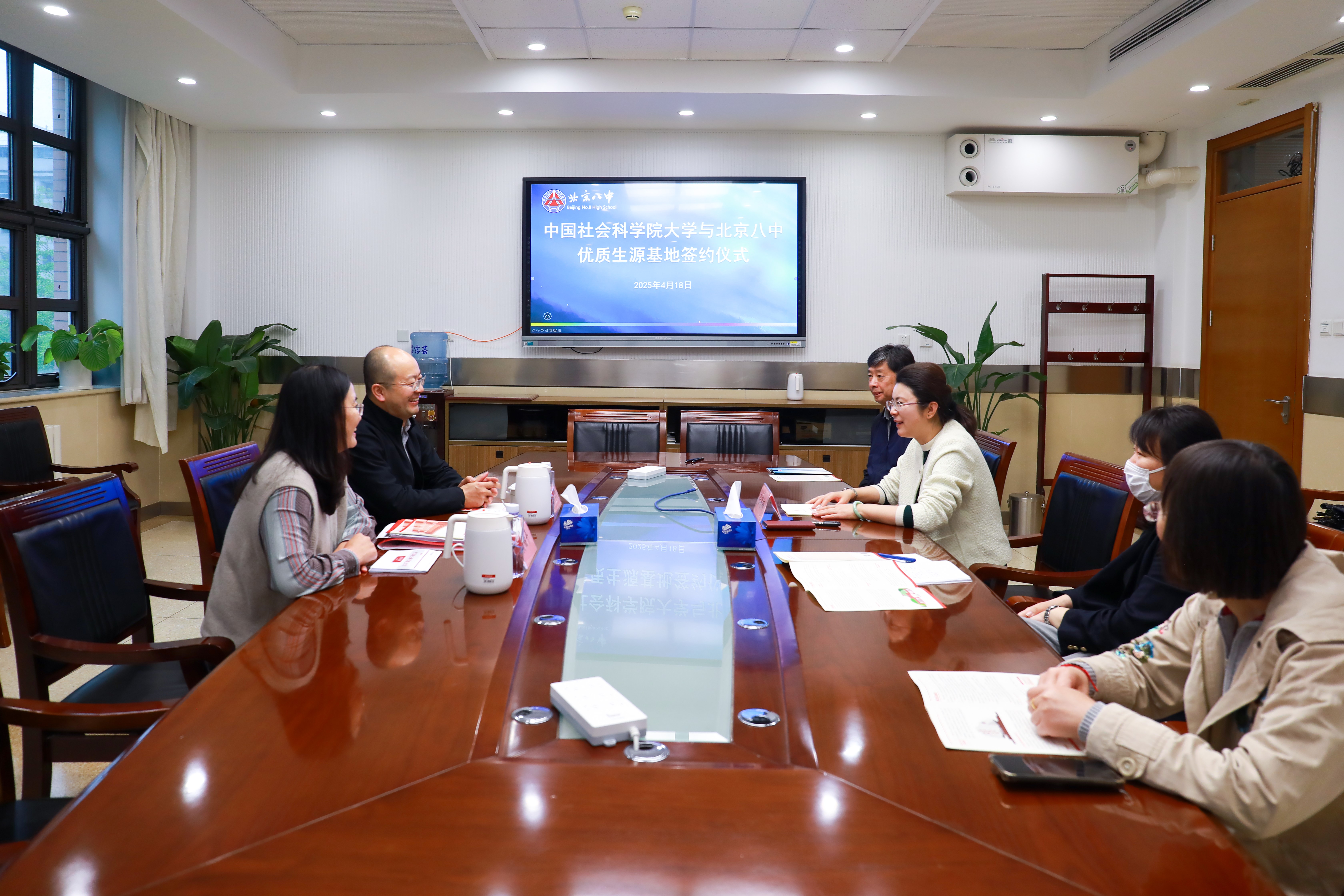 首先,我校招生宣传组成员抵达北京八中高中部,受到校党委书记张晓梅、党政办主任王老师、历史教研室负责人张老师等人的热情接待并展开交流座谈。鉴于双方已是多年合作关系,座谈直奔主题,双方就新时代文科人才培养展开深度对话,重点围绕当前形势下文科学生发展、毕业去向等社会和家长们关切的问题进行了深入交流。会谈后,双方举行优质生源基地签约授牌仪式,标志着教育合作迈向新高度。