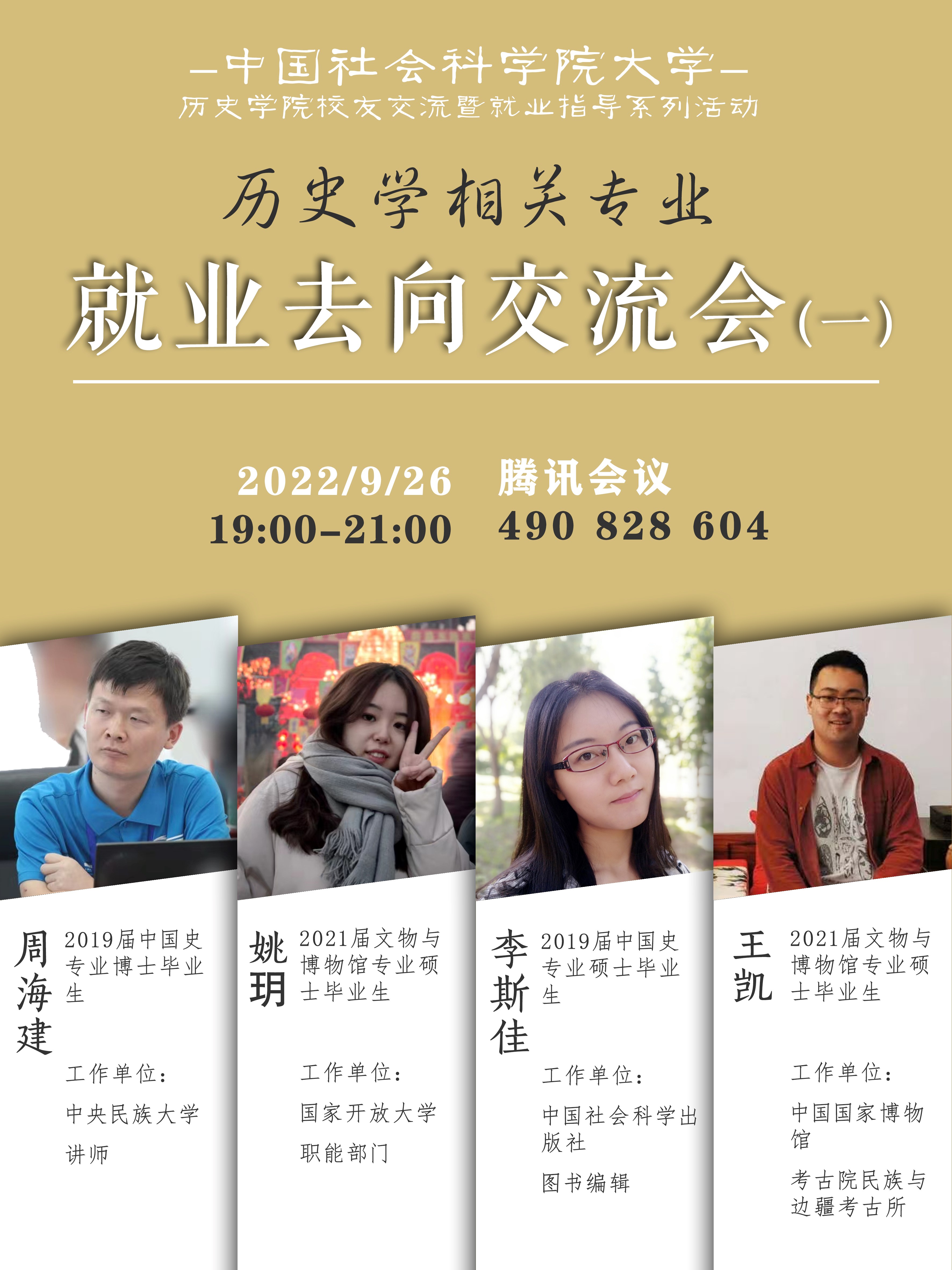 4位校友毕业后分别就职于高校教学科研岗、高校行政管理岗、博物馆研究岗、出版社编辑岗。他们分别结合自身求学、就业经历以及初入职场的感悟,就历史学相关专业毕业生的不同去向选择展开真诚交流,为正在求职的同学提供了暖心又宝贵的参考建议。