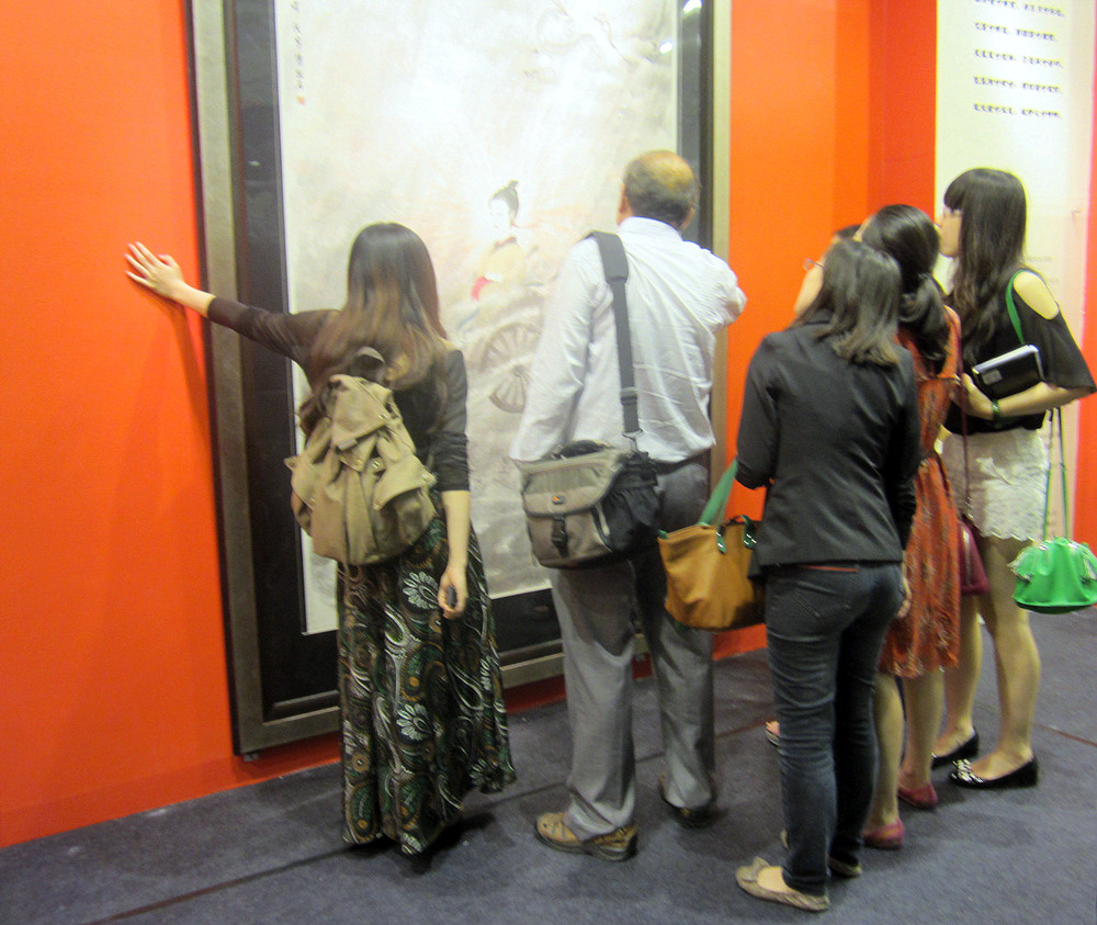2013年5月31日,故宫博物院科研处处长余辉老师在北京保利2013春季艺术品拍卖会现场为书画方向学生讲解保利预展中的中国近现代书画。学生们通过参观这次展览,深切感受到了中国书画艺术的巨大魅力,进一步开阔了知识面,提升了专业水平。