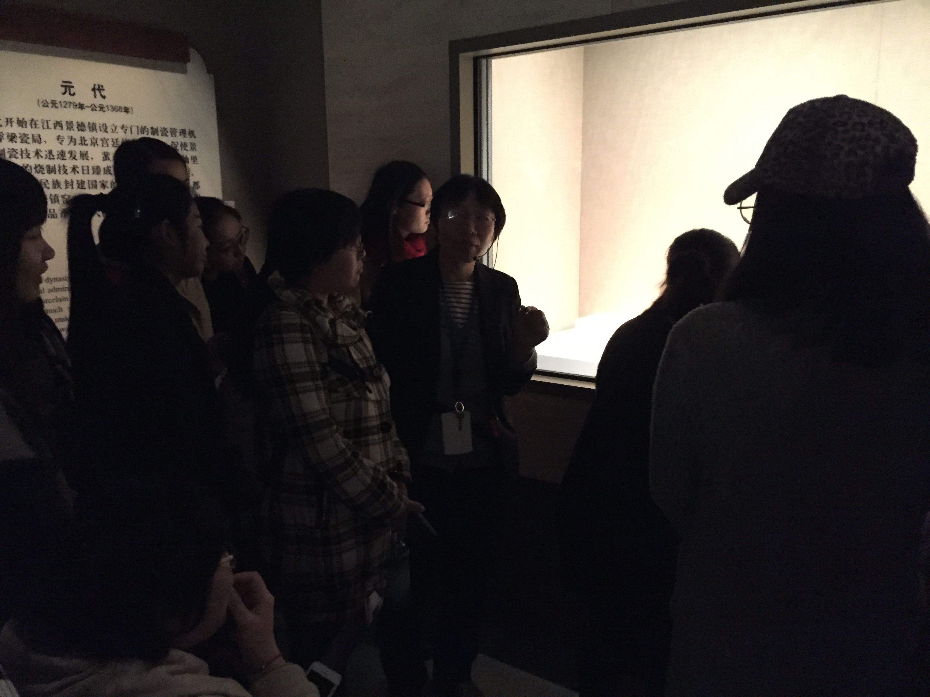 首都博物馆的裴亚静老师讲解了"古代瓷器艺术精品展"、冯好老师讲解了“燕地青铜艺术精品展”、张彩娟老师讲解了“古代玉器艺术精品展”。经过全天的参观考察,同学们对首都博物馆的专题艺术陈列等多个展览有了基本的了解,首博工作人员的细心讲解以及该馆所藏的丰富藏品更让学员们深刻了解了文物的内在价值和历史意义,学员们纷纷记录、拍照,并热情高涨的与讲解专家互动探讨学术问题,获得了宝贵的实践经验。