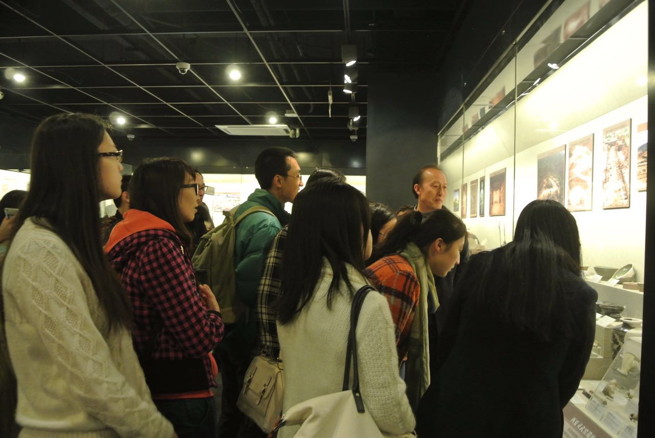 “文物陈列厅”主要承担考古调查、勘探、发掘之后的学术研究、交流工作,该陈列目前仅是作为内部学术交流使用,中心文博专业学生有幸第一次走进了该陈列展室参观。考古所朱乃诚研究员带领大家参观陈列展出的文物并做了精彩的讲解,其中有精美的青铜重器、甲骨等,更是难得一见。