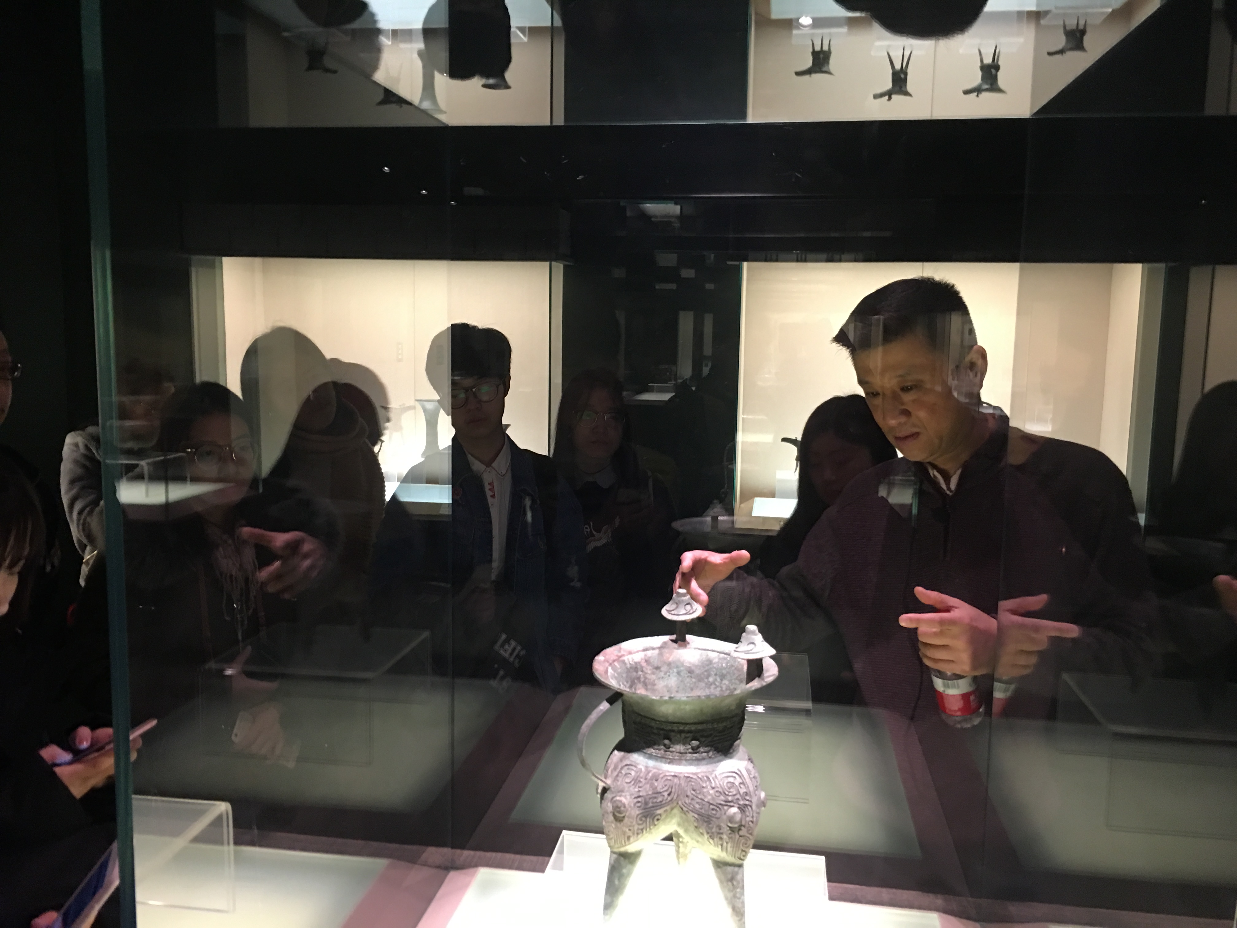 在博物馆资深研究员的讲解下,考察了专题展厅、基本陈列展览。老师们充满睿智的讲解,为大家描绘了文物从诞生到发展至今的沧桑变化。老师们希望同学们用所学知识,保护好文物,而对怎样保护这一问题的提出也让大家陷入了深深地思索之中。
