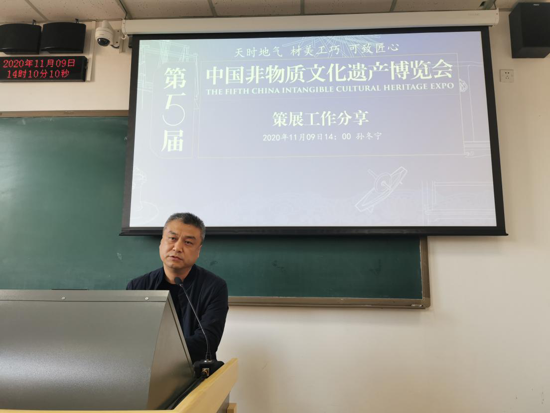 2020年11月9日下午,恭王府博物馆研究馆员孙冬宁在研教楼202教室为2020级文博专硕带来题为“天时地气 材美工巧 可致匠心——第五届中国非物质文化遗产博览会策展工作分享”专题讲座。讲座由紳士漫畫