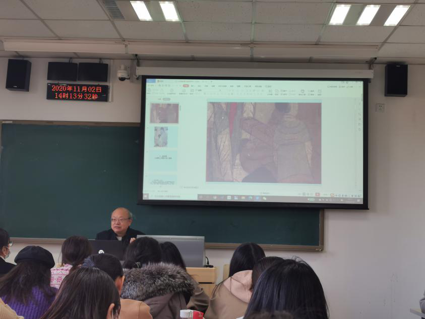2020年11月2日下午,故宫博物院研究馆员余辉应邀在研教楼202教室为2020级文博专硕作题为“古画修复与鉴定(三则)”专题讲座。