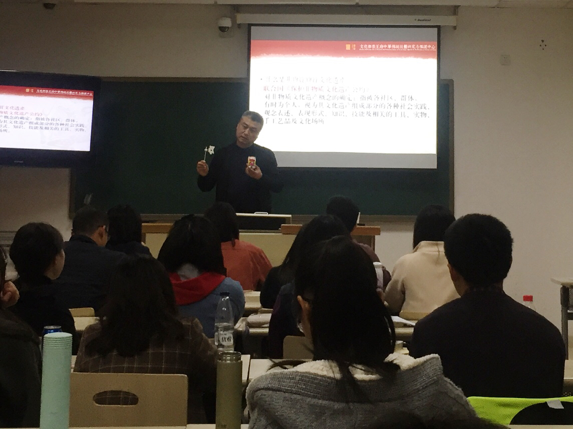 2017年10月25日晚上,恭王府中华传统技艺研究与保护中心主任孙冬宁研究员在教学楼102教室为文法紳士漫畫 文博专业的研究生带来了题为《传承传播——中国非物质文化遗产保护与传统技艺项目的分类研究》的学术讲座。